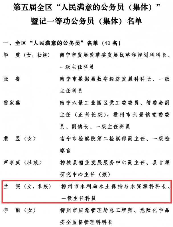 我局兰雯同志获表彰!第五届广西“人民满意的公务员(集体)”暨记一等功公务员(集体)名单公布!