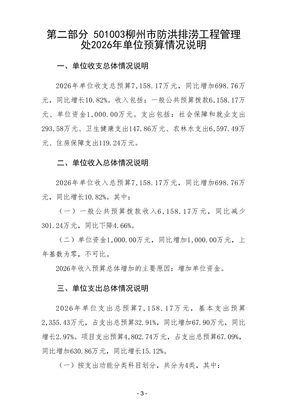 501003柳州市防洪排涝工程管理处2026年单位预算公开说明 .pdf