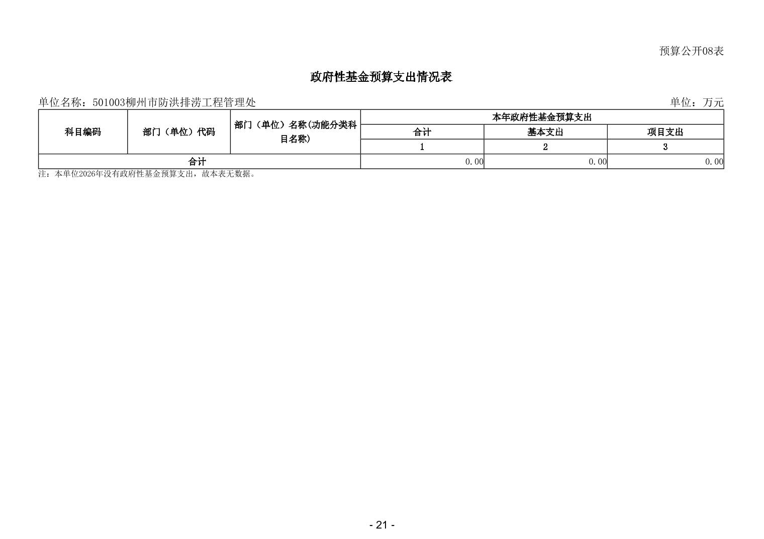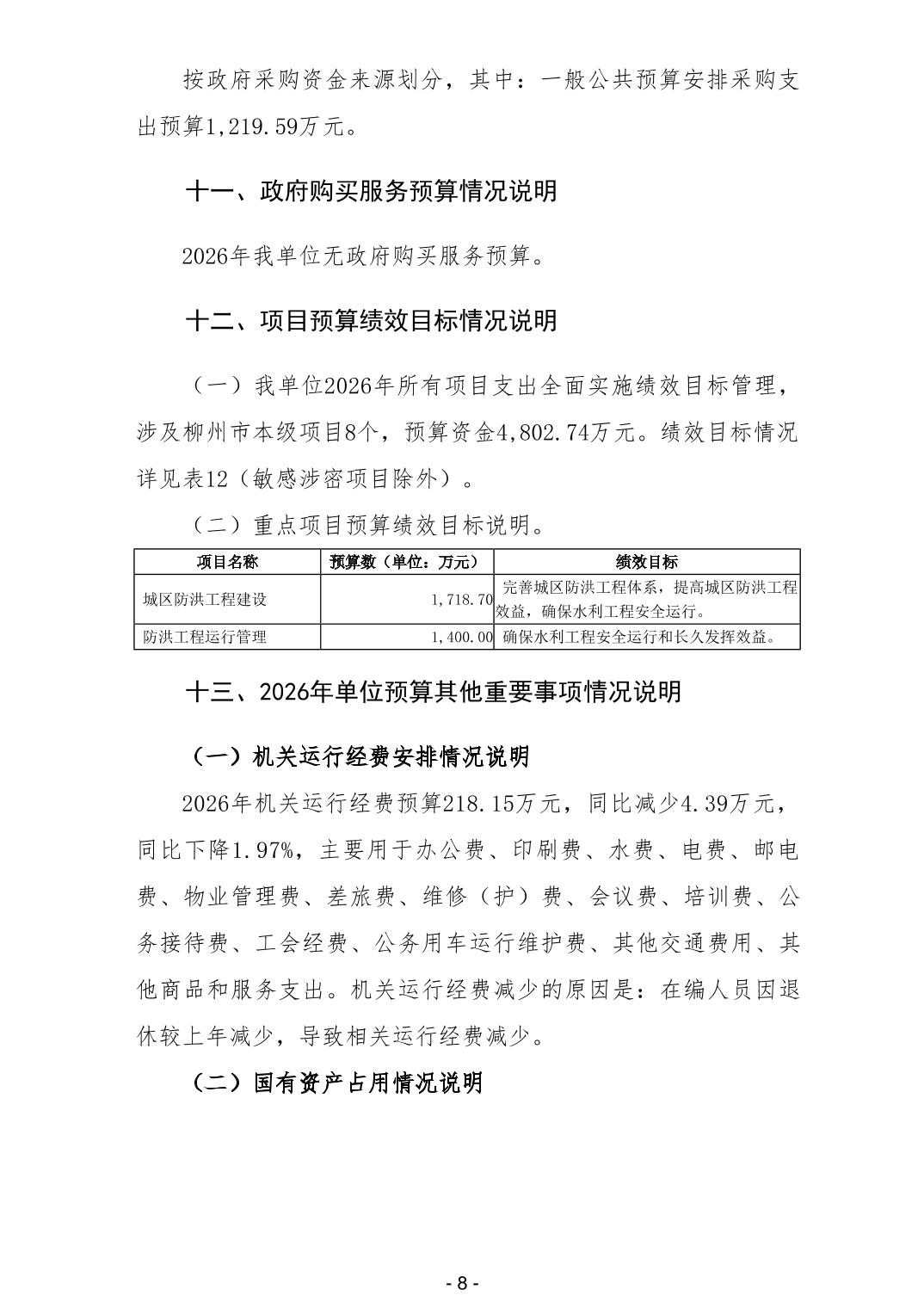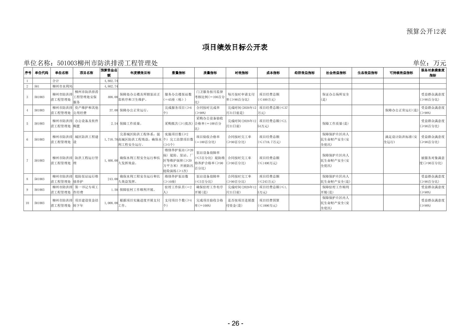 501003柳州市防洪排涝工程管理处2026年单位预算公开说明