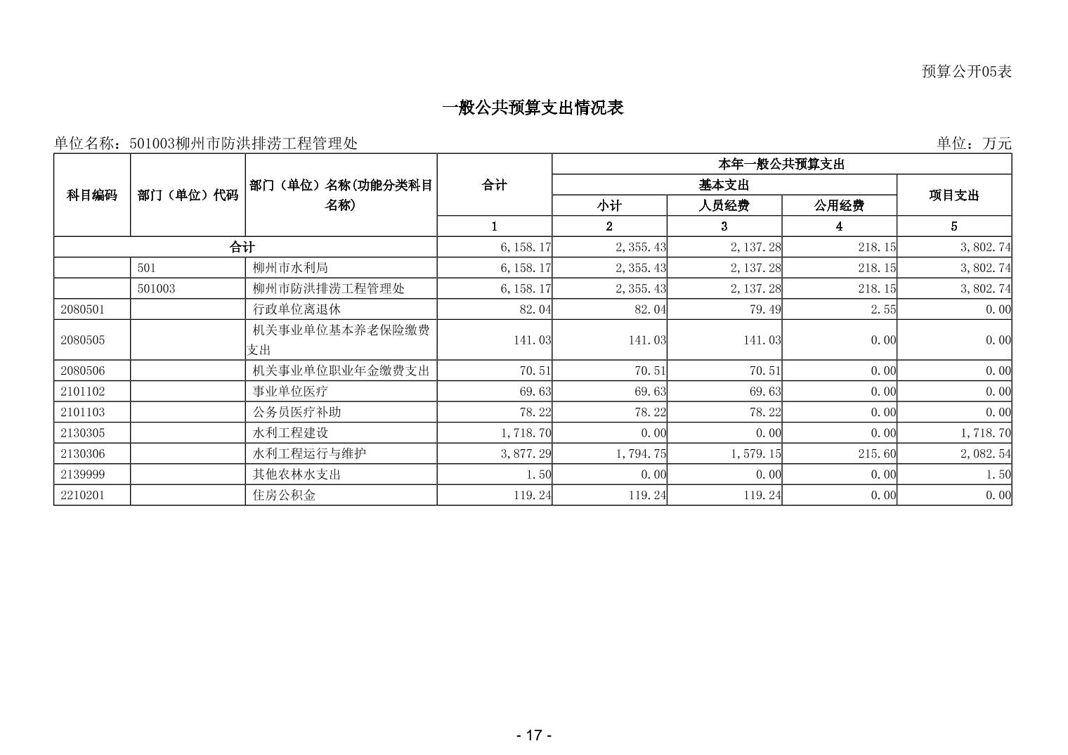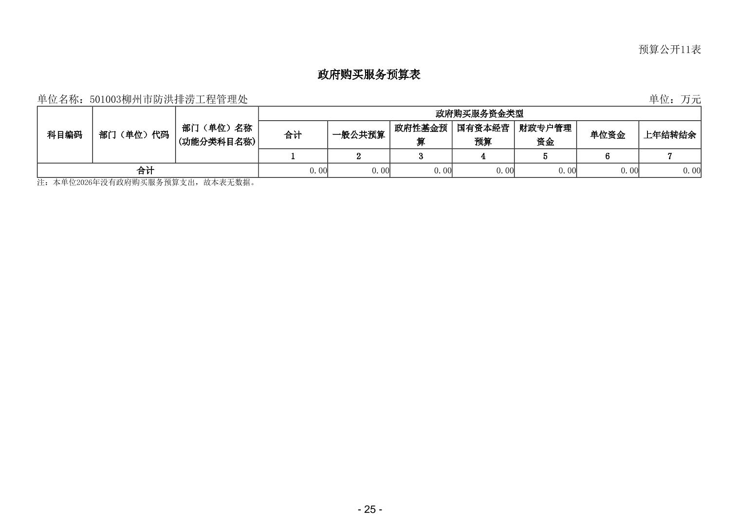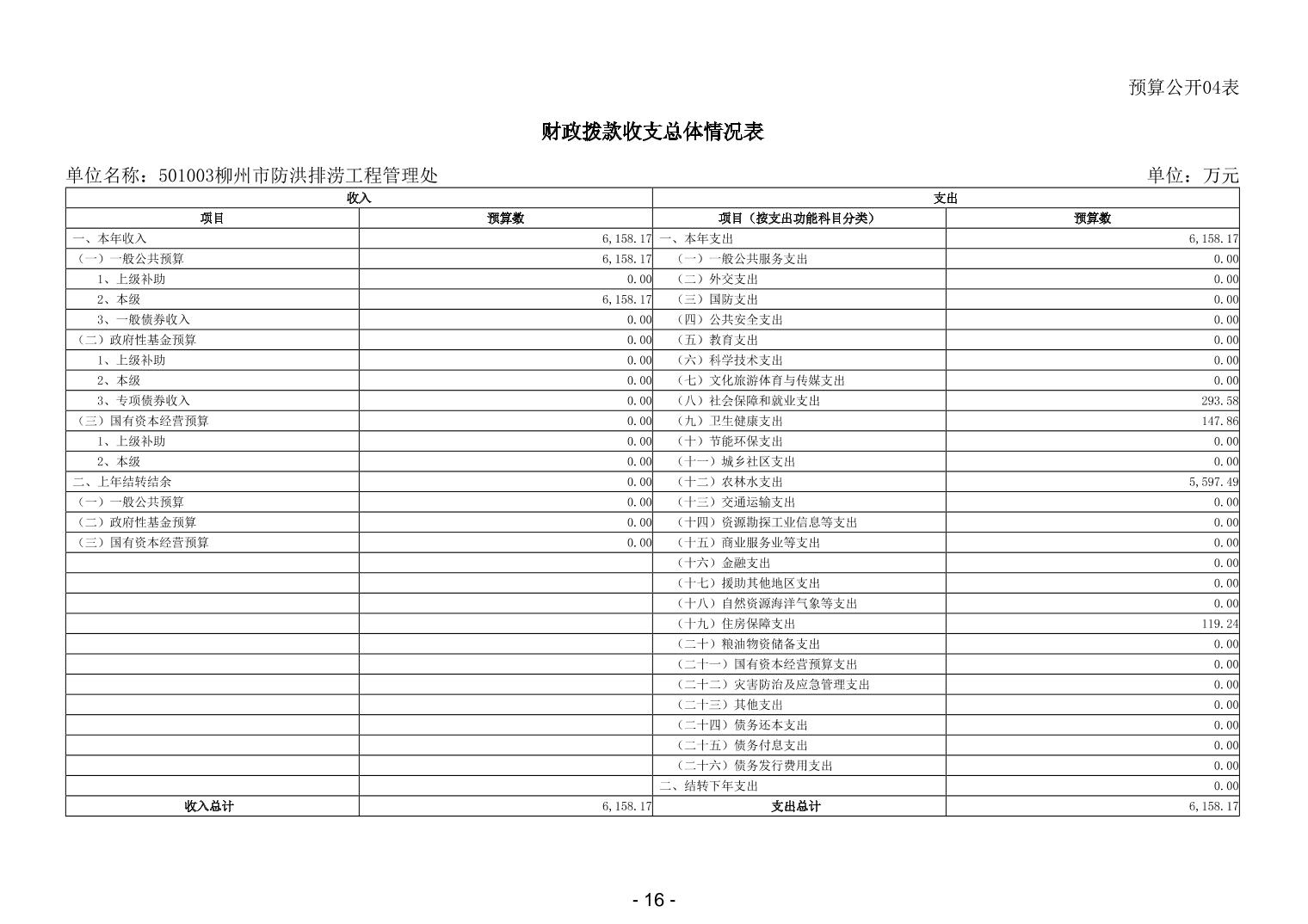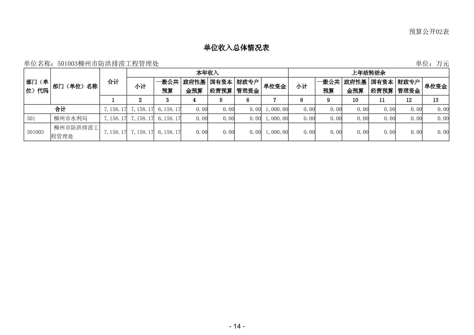 501003柳州市防洪排涝工程管理处2026年单位预算公开说明